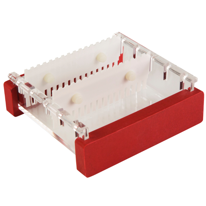 • UV-transparente Gelträger enthalten Aufnahmen für mehrere Kämme pro Lauf