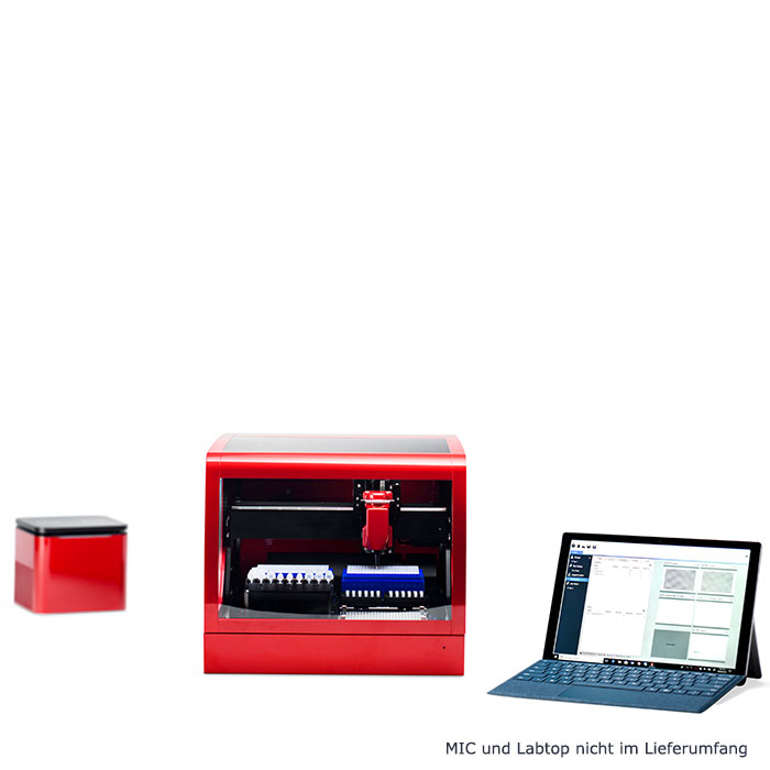 • Pipettiersystem: Höchste Genauigkeit und Präzision von < 10 % für 1 µl Pipettiervolumen (< 1 % für 2 bis 50 µl). Der Pipettierkopf ist leicht austauschbar und kann für optionale, jährliche Kalibrierung einfach verschickt werden. Geeignet auch für 384 Well Platten und MIC-Tubes.