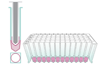 • Neu konzipierte zylindrische Wells ermöglichen eine gute Probendurchmischung