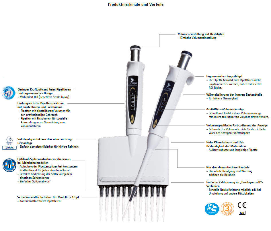 • Umfangreichstes Pipettenprogramm für unterschiedliche Benutzer und Anwendungen