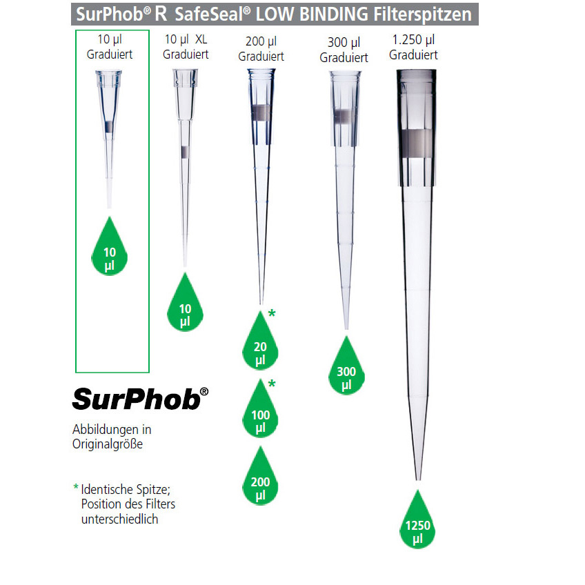 SafeSeal SurPhob Filterspitze 10 µl, kurz passend für:
