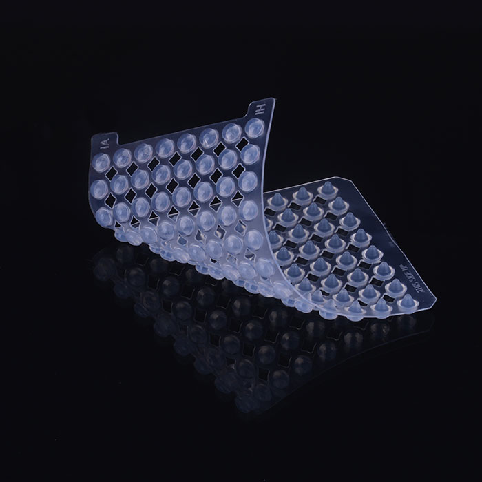 Zuverlässiger Verschluß der Wells einer MT-Platte in Kombination mit einem andruckjustierbarem Heizdeckel. Durch den Deckelanpressdruck weiten sich die weichen Noppen auf der Unterseite der Matte und verschließen so perfekt jedes Well. Keine Zugabe von Mineralöl nötig. Nach Gebrauch wird die Matte autoklaviert oder mit Natriumhypochlorid oberflächensterilisiert. Bis zu 50 x wieder verwendbar.