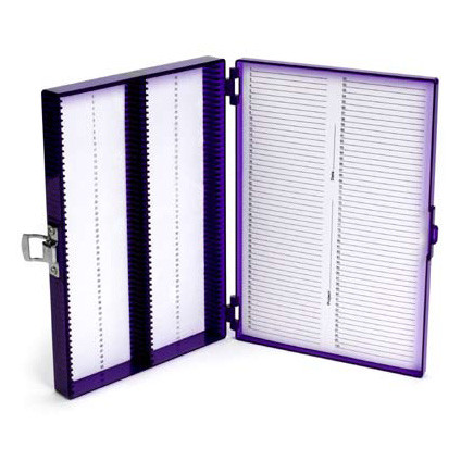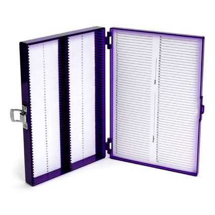 Schutz für Objektträger auch in sehr kalter Umgebung bis -80°C. Die Boxen sind aufgrund der eingesetzten Materialien (Polycarbonat, rostfreier Stahl, Schaumstoff) kältresistent bis minus 196°C.