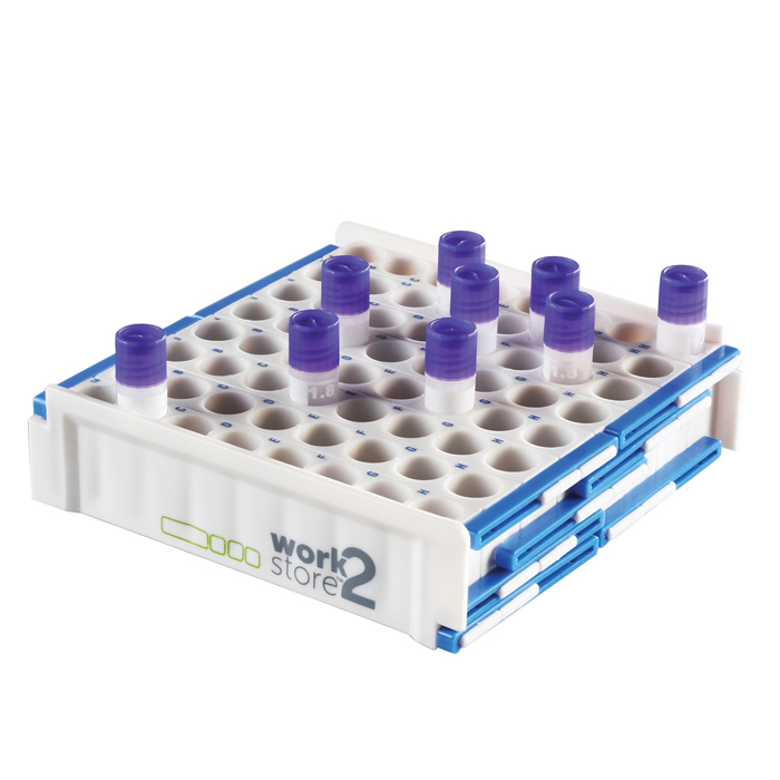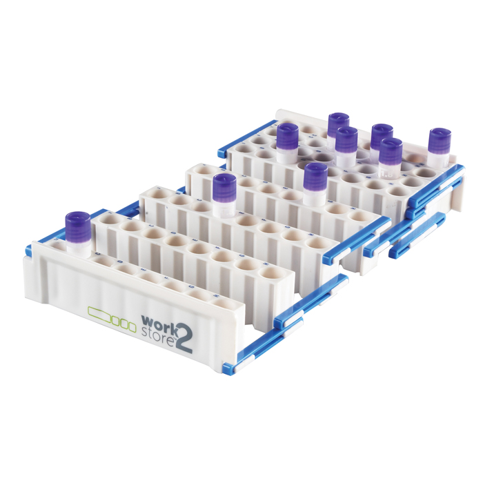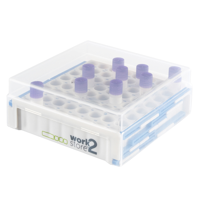 Der mitgelieferte Deckel schützt die im Rack befindlichen Proben und sorgt gleichzeitig dafür, dass das Rack nicht versehentlich auseinander gezogen wird.
