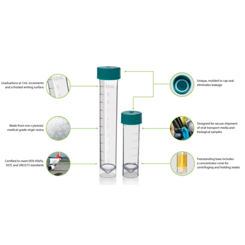 • IATA- und DOT 95kPa-Standard: Produkte erfüllen alle Leistungsspezifikationen von -40 °C bis +55 °C und eignen sich zur Verwendung als Versandröhrchen für diagnostische und infektiöse Proben (IATA DGR UN3373 und USDOT HMR, 49 C.F.R., Parts 171 171-180).