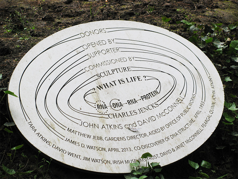 Die Skulptur „What is life?“ wurde bei Charles Jencks (1939–2019) in Auftrag gegeben, um die Wissenschaft in Irland zu feiern und alle, insbesondere junge Menschen, zu ermutigen, die Wissenschaft und ihre Rolle in der Gesellschaft zu verstehen. Die Skulptur stellt den Fluss genetischer Informationen zwischen DNA, RNA und Protein dar und wurde von James Watson zum 60. Jahrestag (2013) der Entdeckung der Doppelhelix durch Watson und seinen Kollegen Francis Crick im April 1953 eingeweiht.