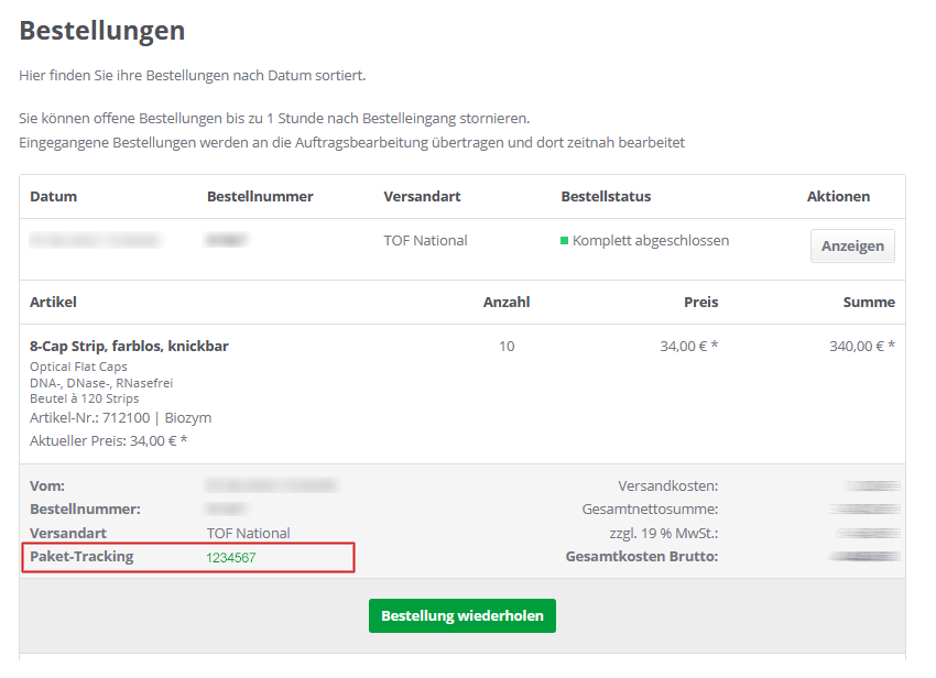 Ab sofort können Sie in Ihrem Kundenkonto Ihre Bestellungen tracken.