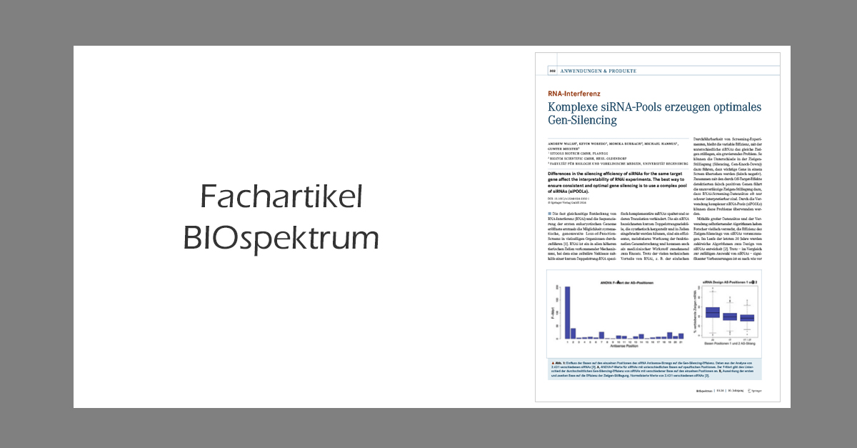 In der aktuellen BIOspektrum haben wir zusammen mit siTOOLs einen Artikel über RNA-Interferenz geschrieben.
